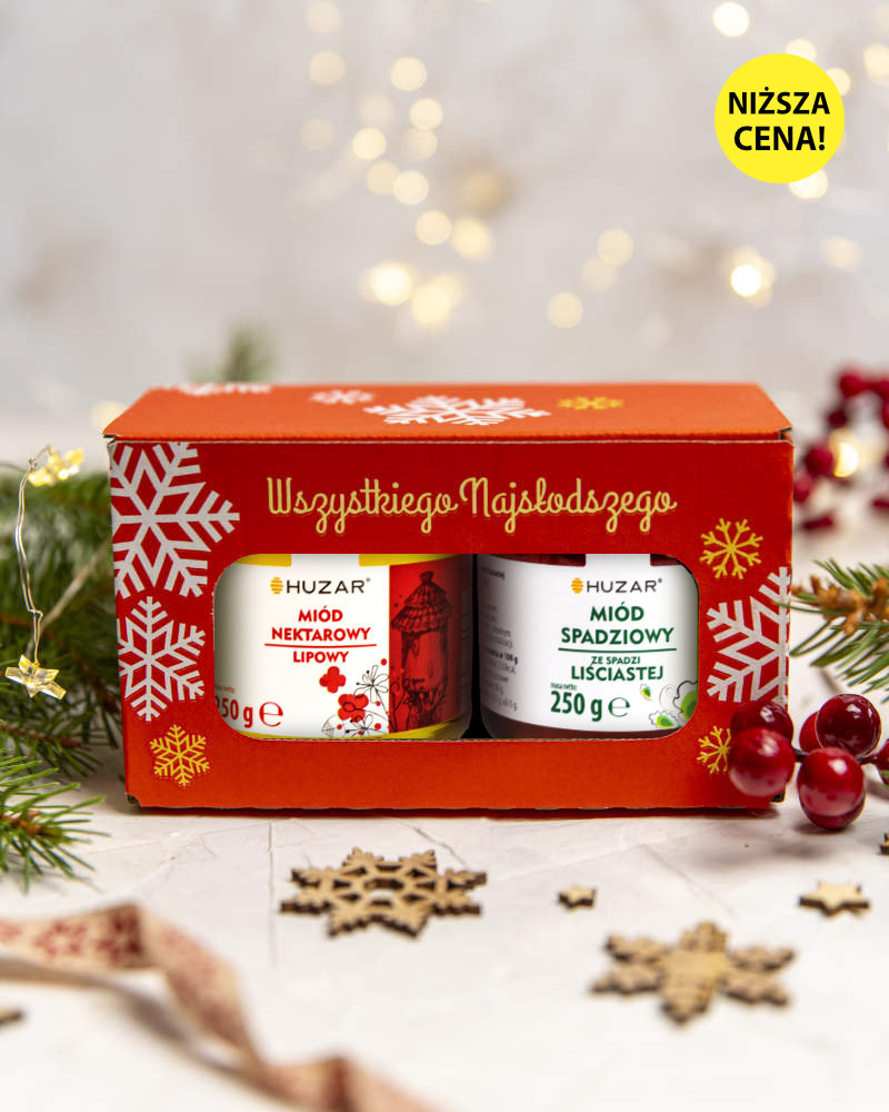Świąteczny zestaw miodów Lipowy & Spadziowy to nie tylko doskonały smak, ale również piękny upominek, który zachwyci zarówno miłośników miodu, jak i osoby szukające naturalnego, eleganckiego prezentu na święta.